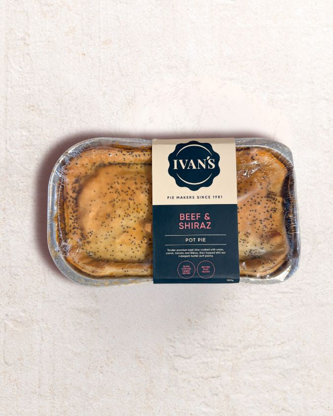 Tender premium beef slow-cooked with onion, carrot, tomato and Shiraz, then topped with our indulgent butter puff pastry.